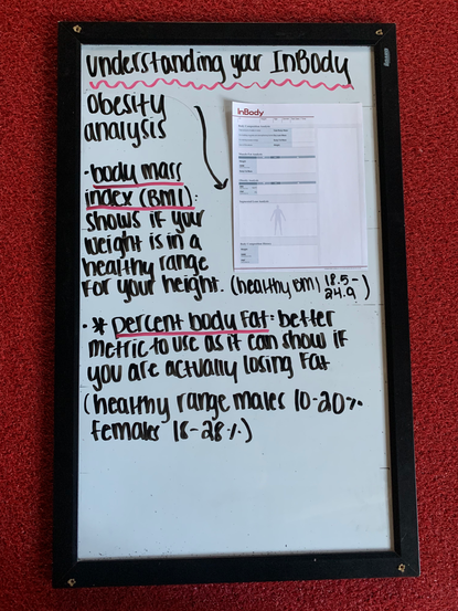 That was a lot of fitness talk! To keep it simple, continuing to build muscle, staying active, and following a healthy eating plan that works for you will keep you working towards your goals. Looking at those metrics like percent body fat, obesity analysis, and mass control will keep you informed on where your body composition is headed. Of course, ask one of us trainers if you have any questions regarding InBody or how to reach your fitness goals!